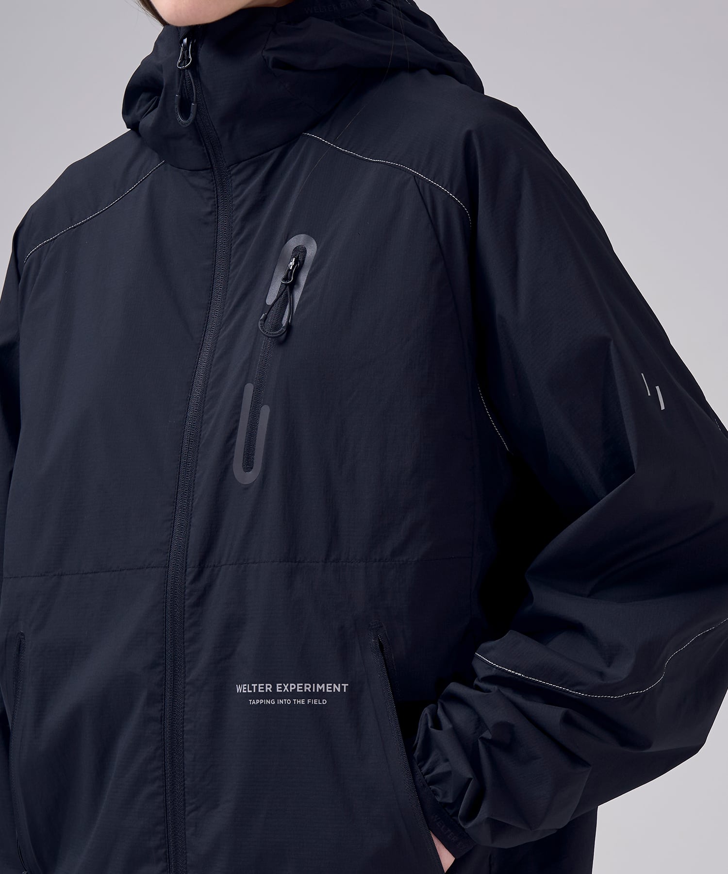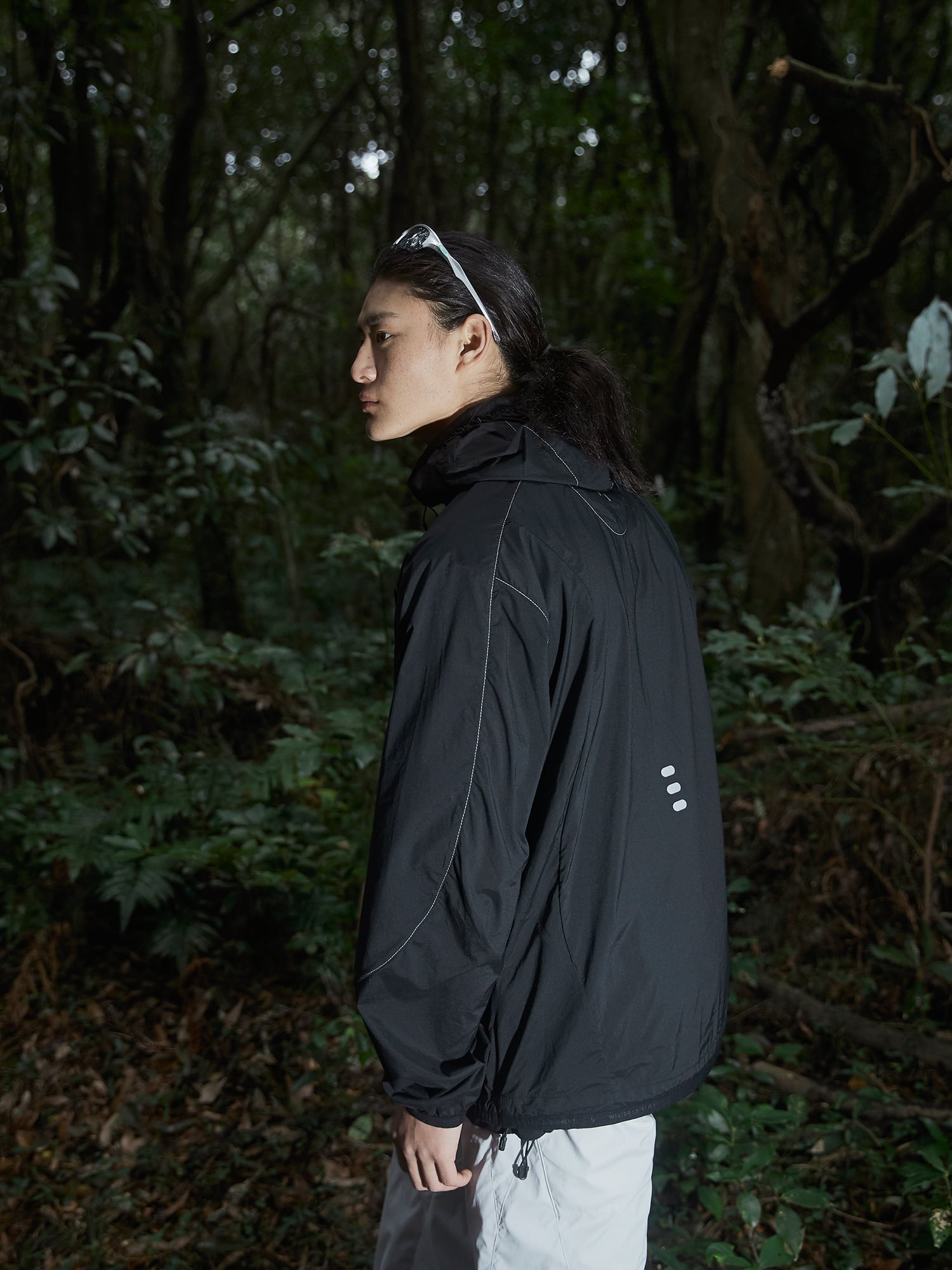 フード・裾・袖は調整可能で、快適なフィット感を実現。左胸には使い勝手の良い斜めポケットを配置しています。シームやロゴにはリフレクティブ素材を採用し、夜間や悪天候時の視認性にも配慮しています。