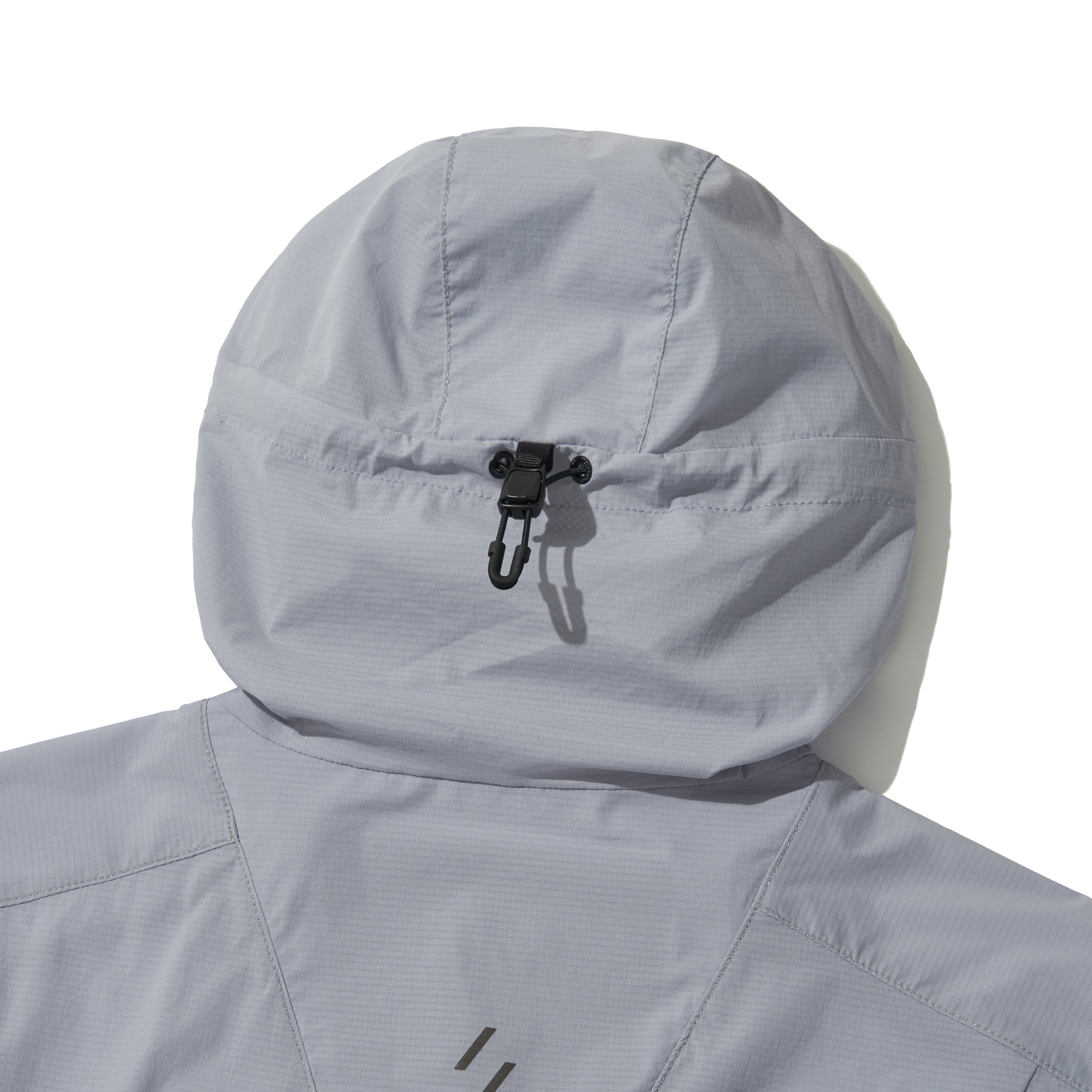 フード・裾・袖は調整可能で、快適なフィット感を実現。左胸には使い勝手の良い斜めポケットを配置しています。シームやロゴにはリフレクティブ素材を採用し、夜間や悪天候時の視認性にも配慮しています。
