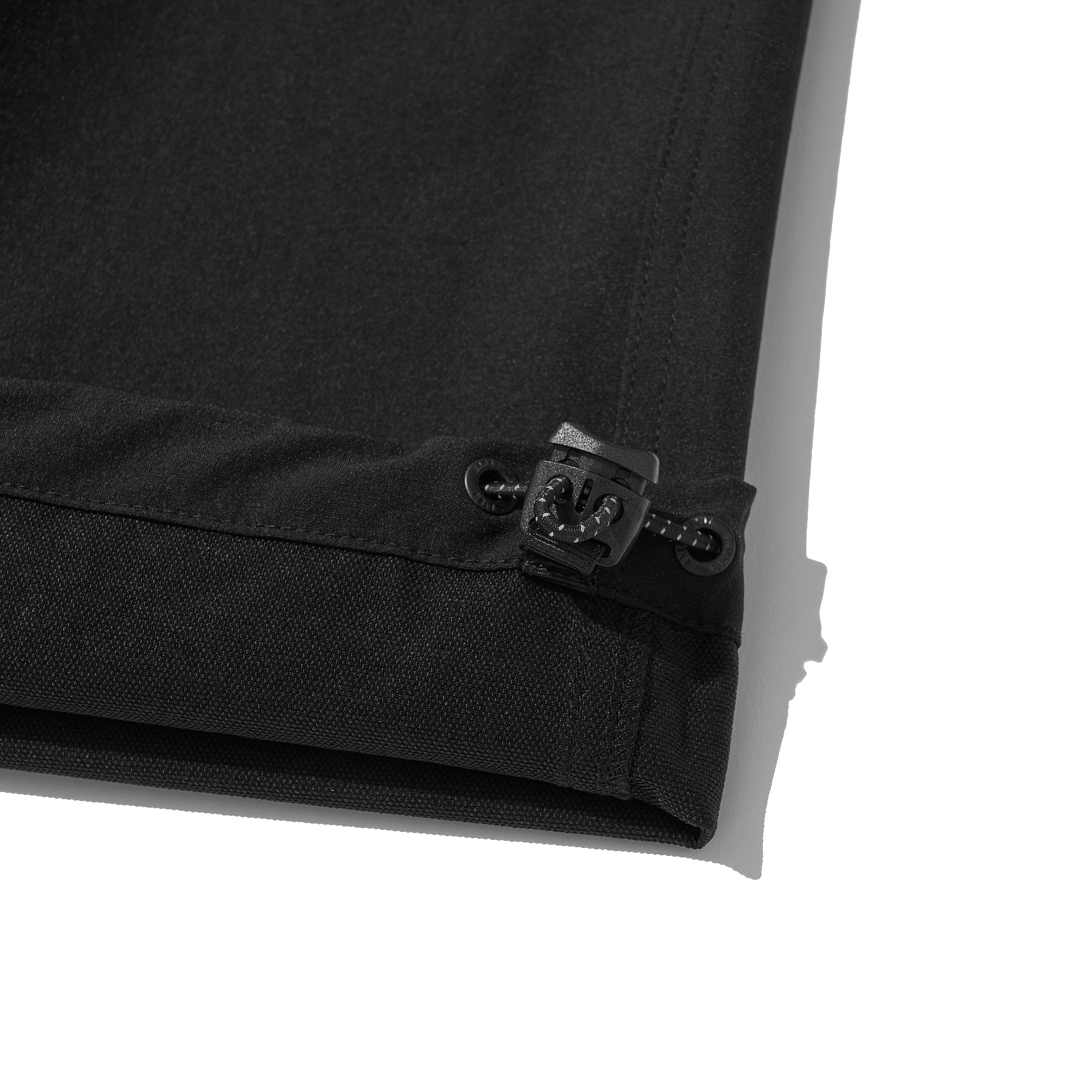 ウエストはウェビングベルトで簡単に調整可能。リフレクティブディテールにより夜間の視認性にも配慮しています。裾のドローコードでシルエットの調整ができ、スタイリングや動きやすさに合わせてフィット感をコントロール可能。軽いアウトドアからデイリーまで対応する汎用性の高い一本です。