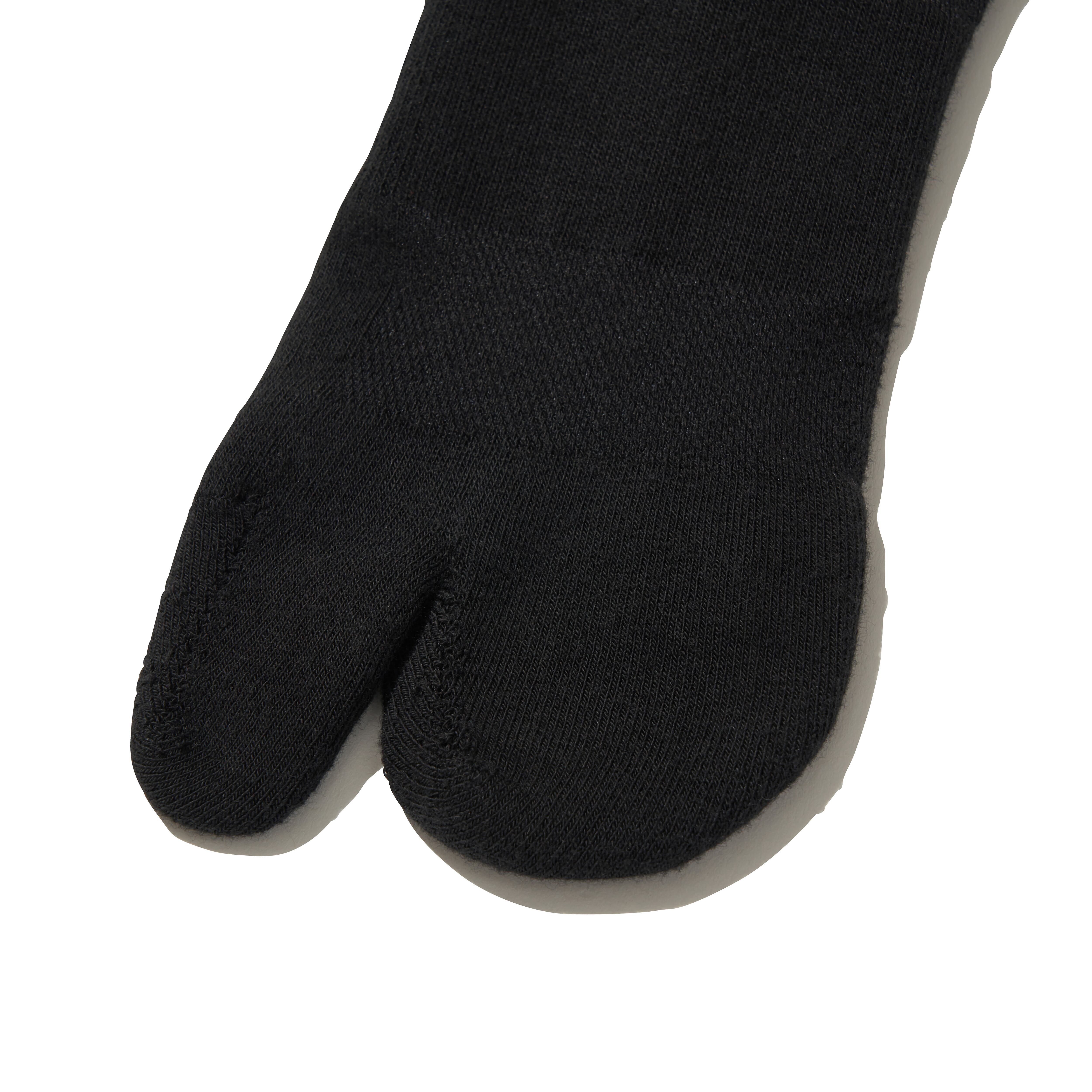 親指が分かれた足袋デザインにより、サンダルやロープロファイルシューズとの相性が良く、指同士の摩擦を軽減して快適な履き心地を実現。耐久性のある編み構造で、すっきりとしたシルエットと高い汎用性を兼ね備えています。
