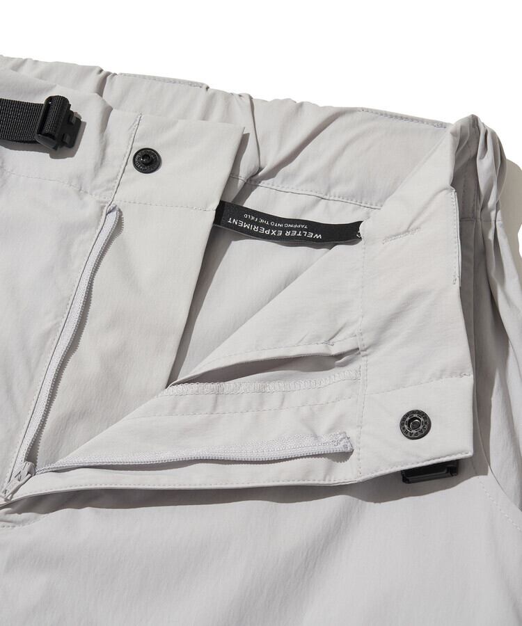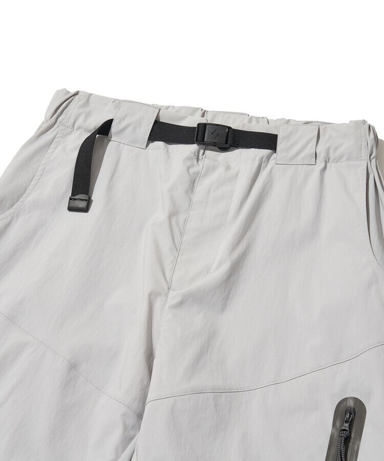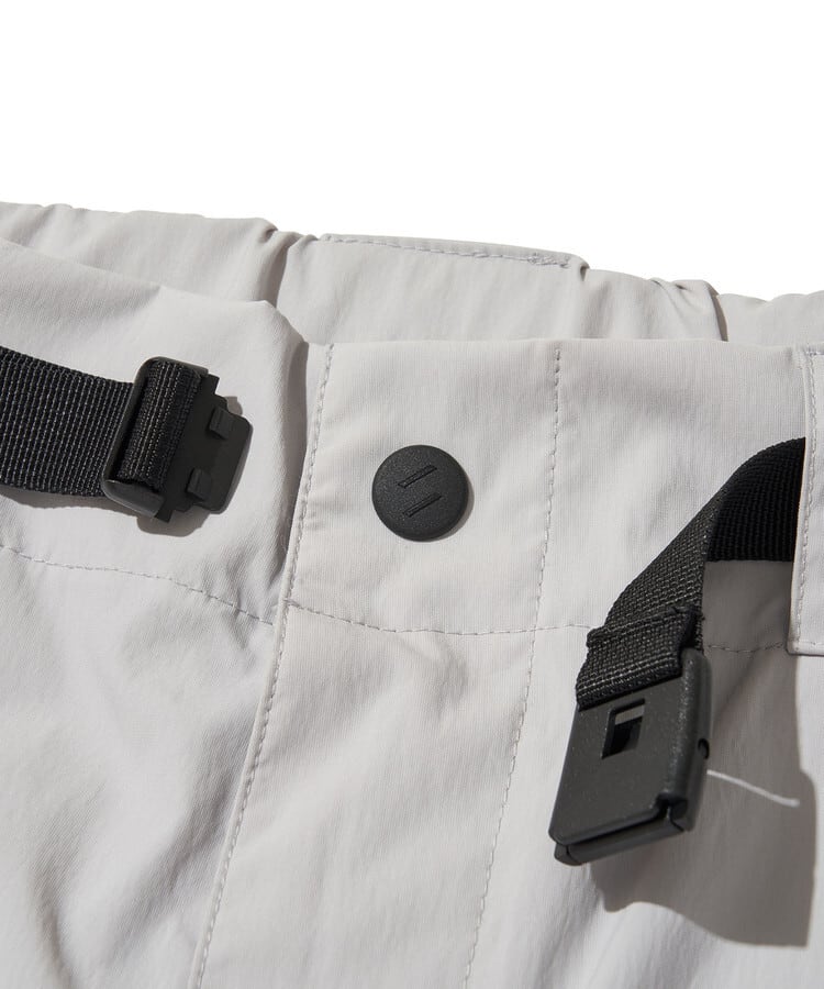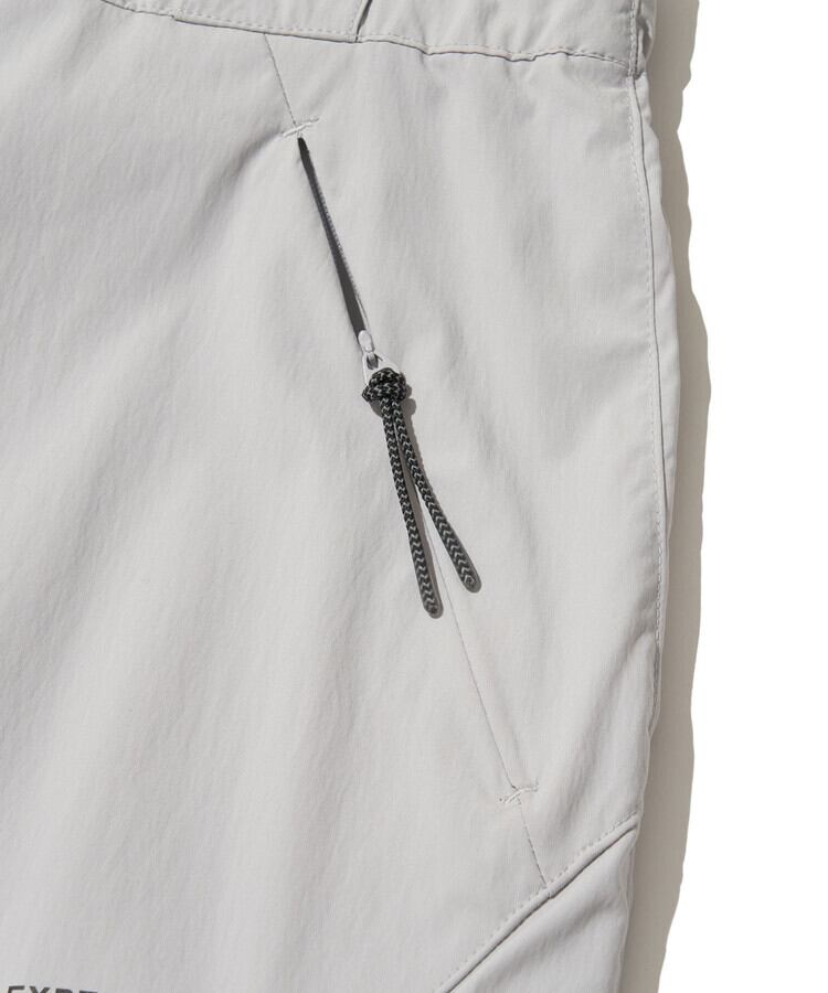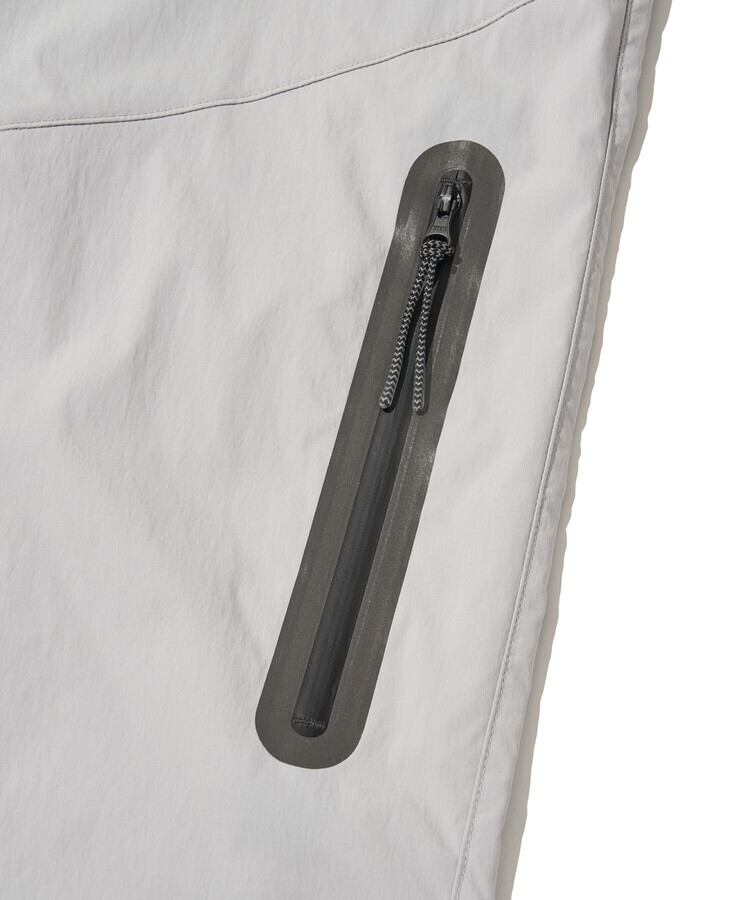 ウエストはウェビングベルトで簡単に調整可能。ジップポケットで収納力を確保しつつ、ベンチレーションジッパーにより通気性を高め、アクティブな動きの中でも快適さを維持します。裾にはドローコードを配置し、幅・丈の調整が可能でスタイリングの幅も広がります。リフレクティブディテールにより夜間の視認性にも配慮しています。